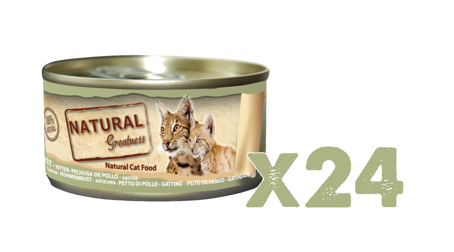 Natural Greatness Hühnerbrust ist ein Ergänzungsfutter für Kätzchen, hergestellt aus den in der Zusammensetzung aufgeführten natürlichen Zutaten. Diese Dose mit Ultra-Premium-Katzenfutter enthält keine Zusatzstoffe, tierischen Nebenprodukte oder Füllstoffe.