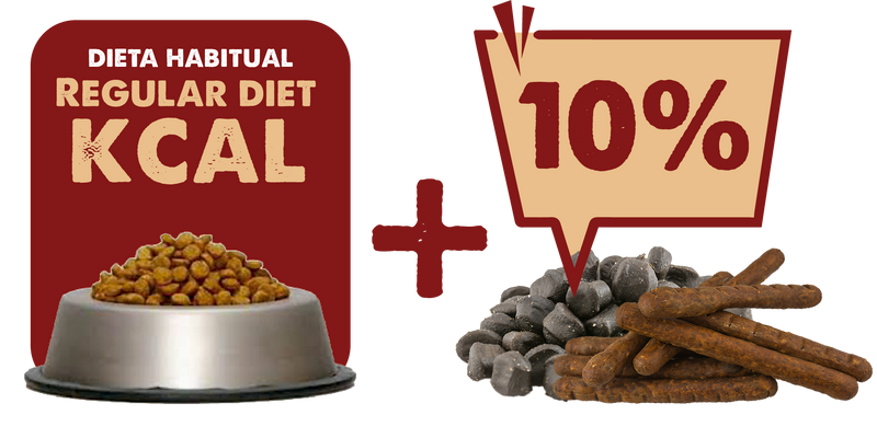 Die empfohlene Tageszufuhr sollte 10 % der täglichen Kilokalorien der üblichen Ernährung des Hundes nicht überschreiten. Beaufsichtigen Sie Ihr Haustier immer, während es den Snack frisst, und achten Sie darauf, eine für seinen Kiefer geeignete Größe zu wählen.