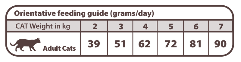 Rohprotein (32 %), Rohöle und -fette (20 %), Rohasche (8,5 %), Rohfaser (2,5 %), Calcium (1,6 %), Omega-3-Fettsäuren (0,4 %), Omega-6-Fettsäuren (3,25 %), Phosphor (1,1 %), Kalium (0,8 %) und Natrium (0,45 %)